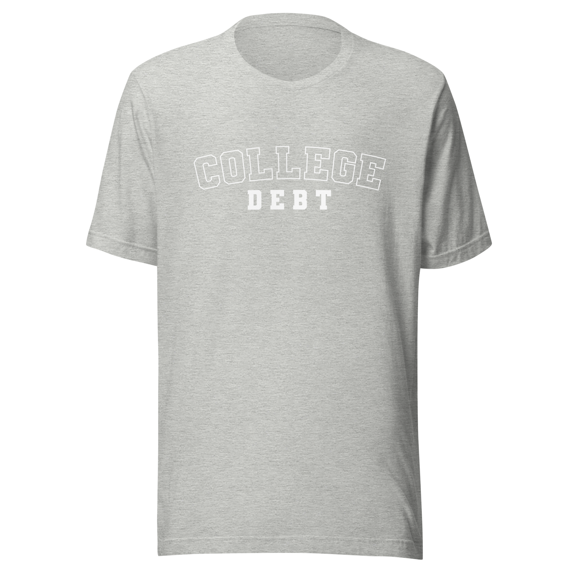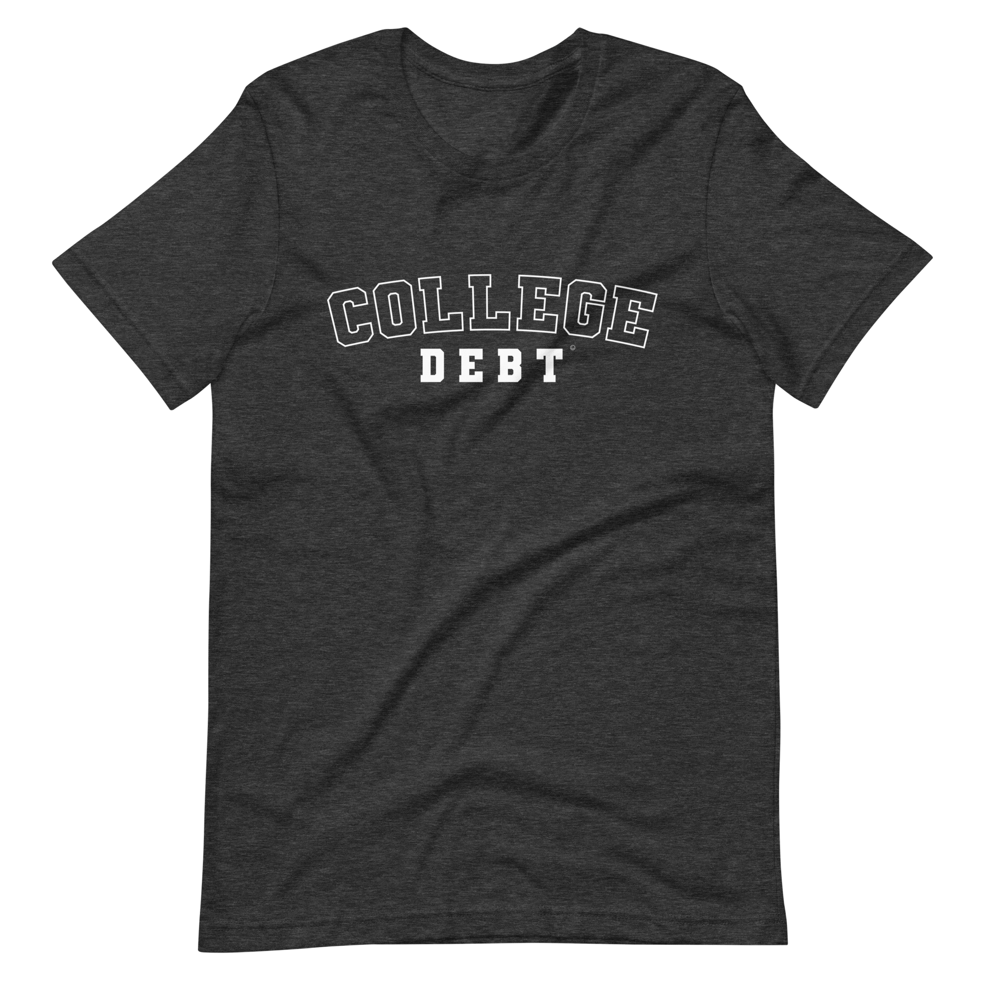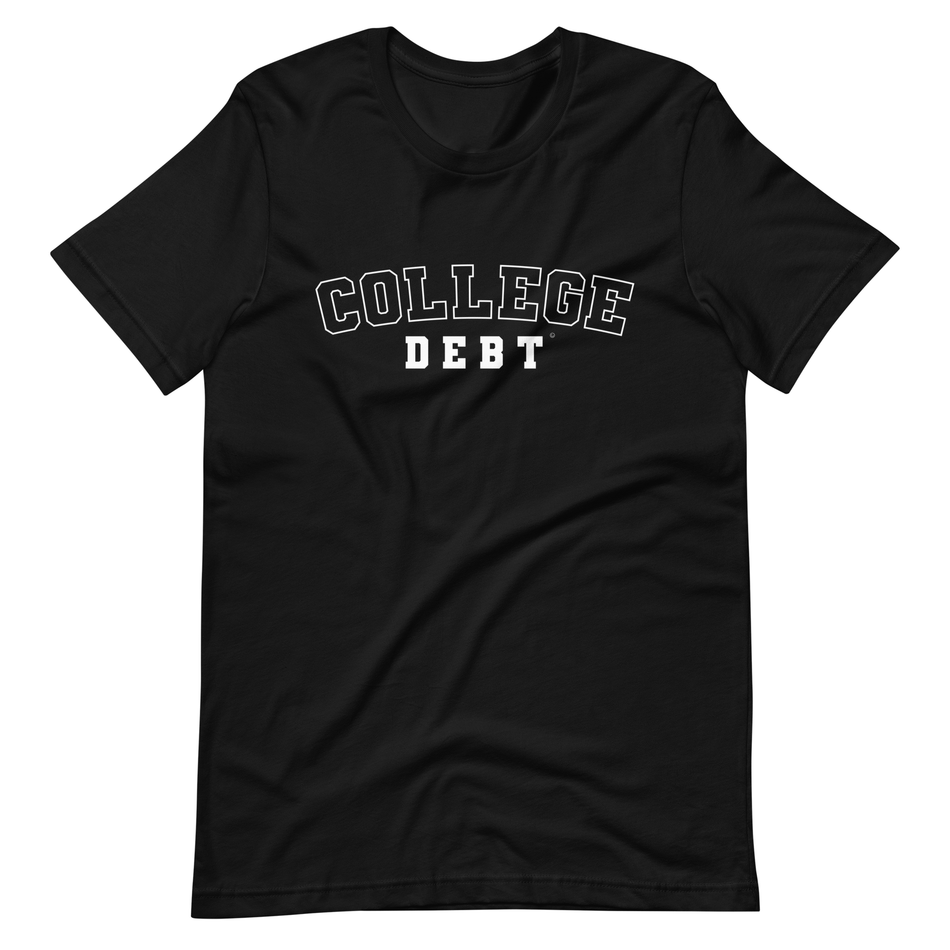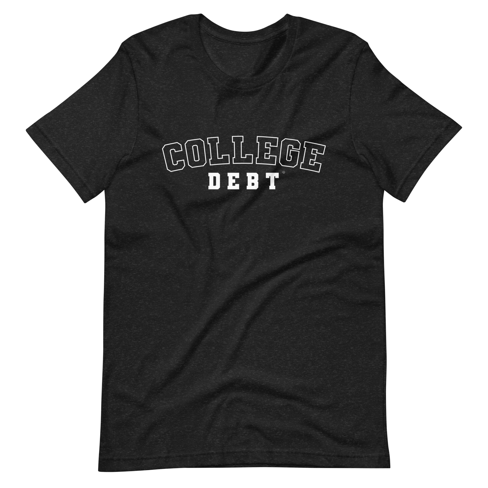 Wear it with pride (or resignation) as you face the harsh reality of higher education. "College Debt" is emblazoned across the chest, a bold statement for those who know that the real degree you earn is in financial obligations.
