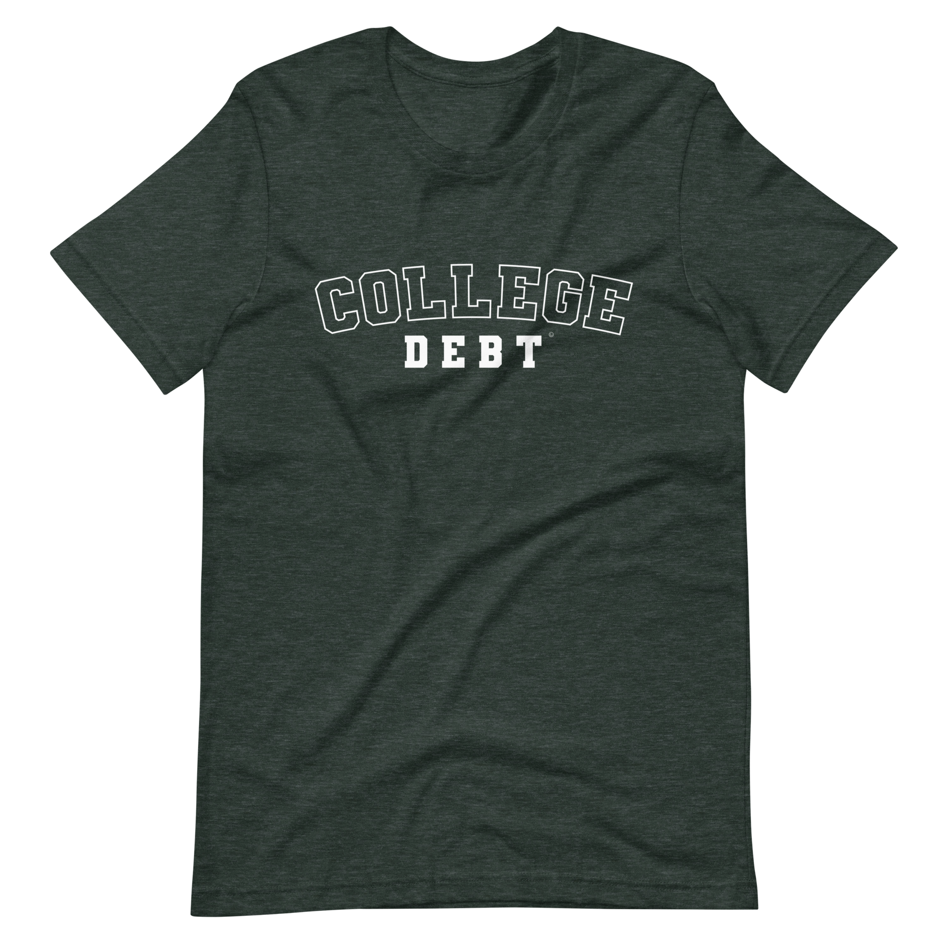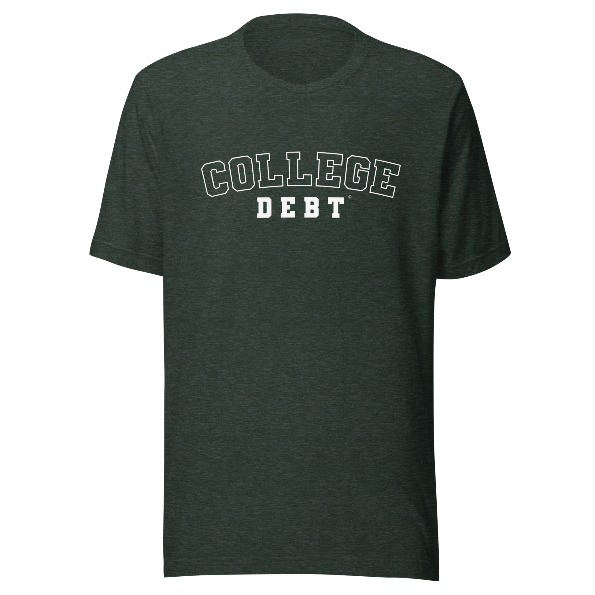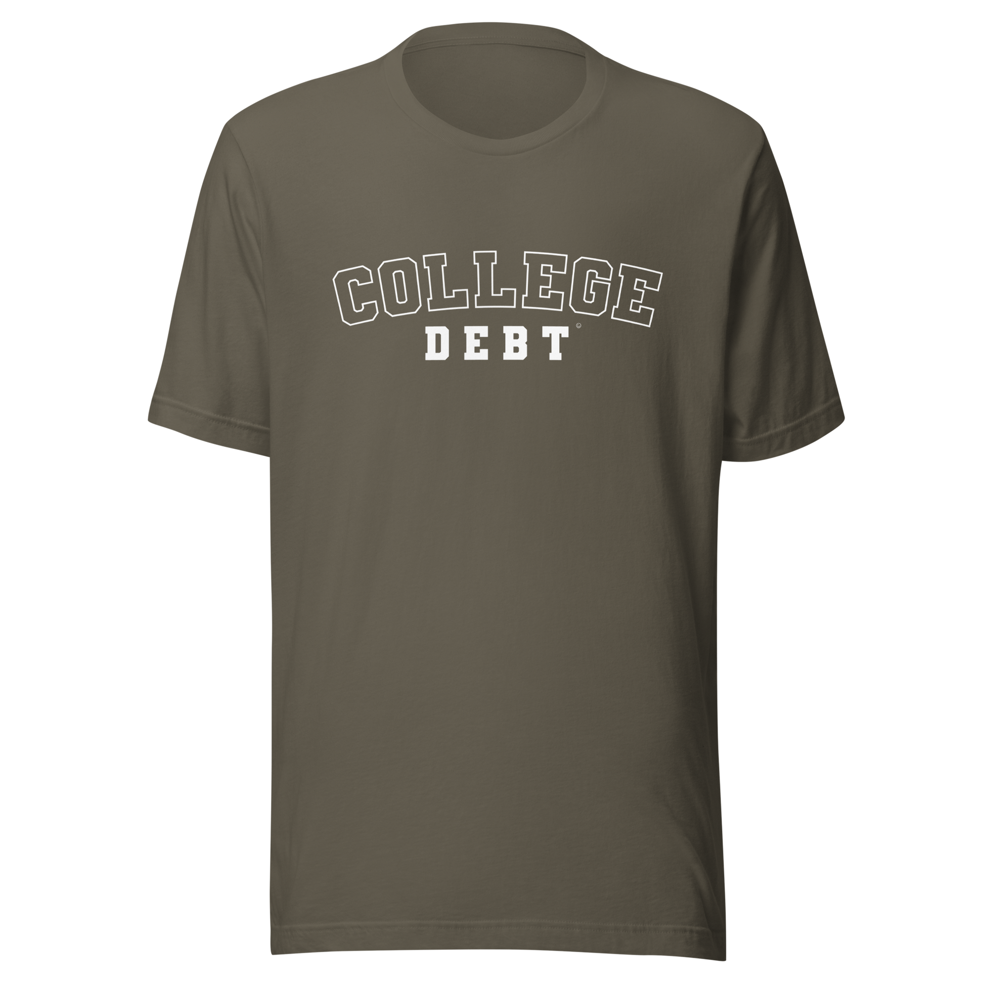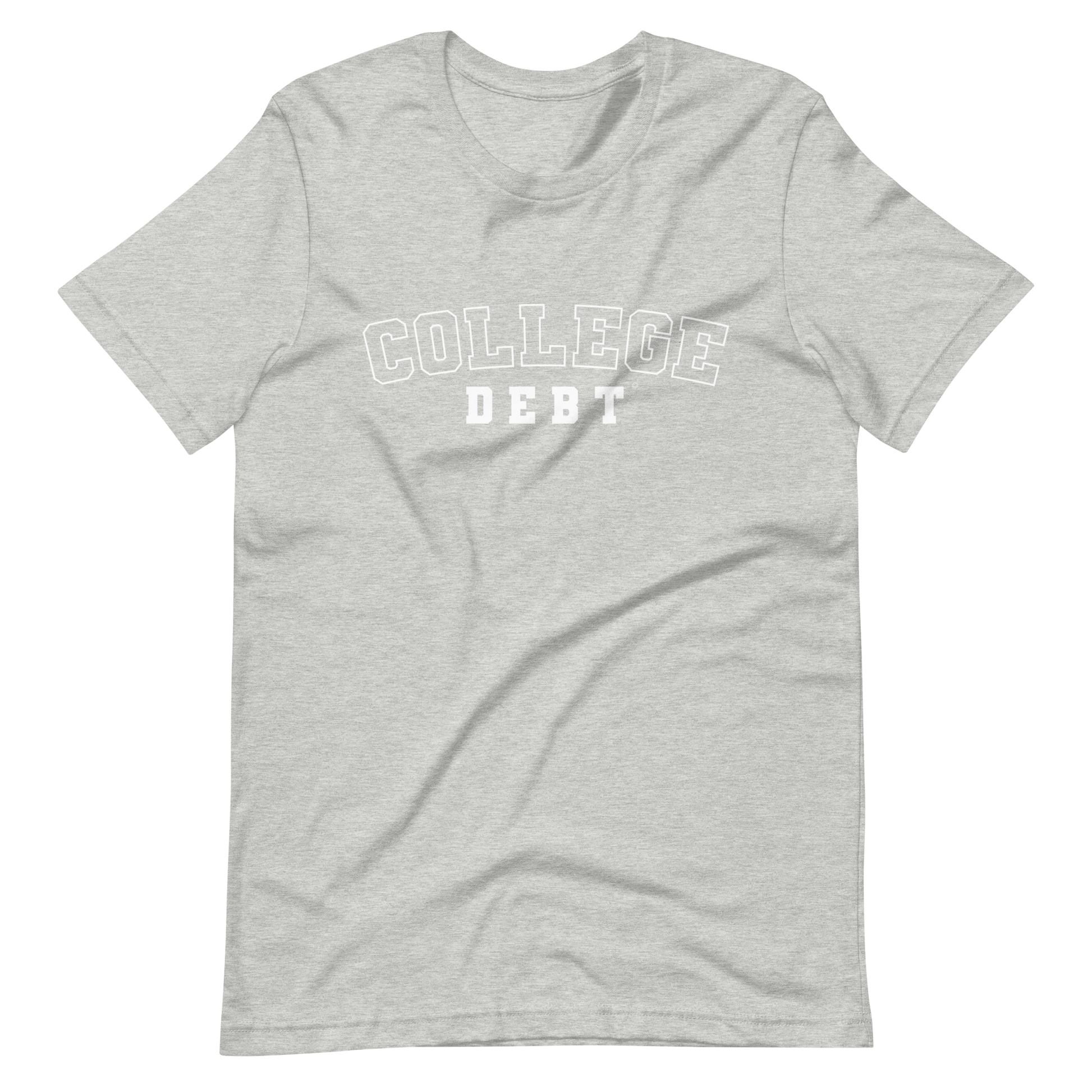 Wear it with pride (or resignation) as you face the harsh reality of higher education. "College Debt" is emblazoned across the chest, a bold statement for those who know that the real degree you earn is in financial obligations.